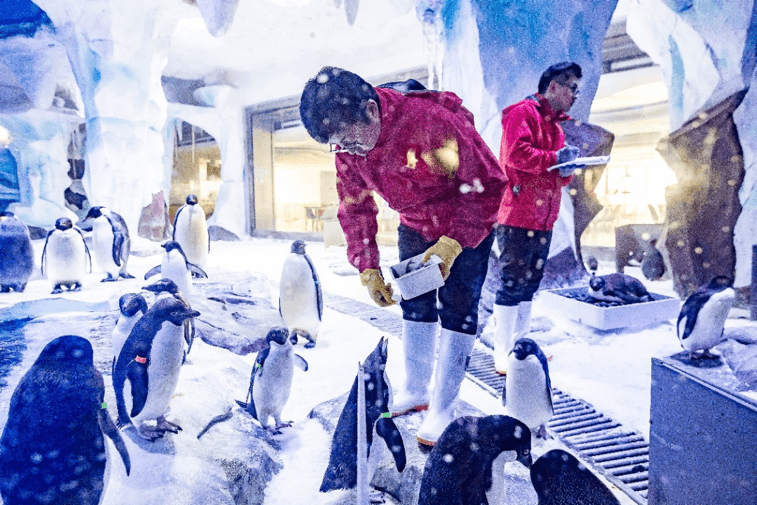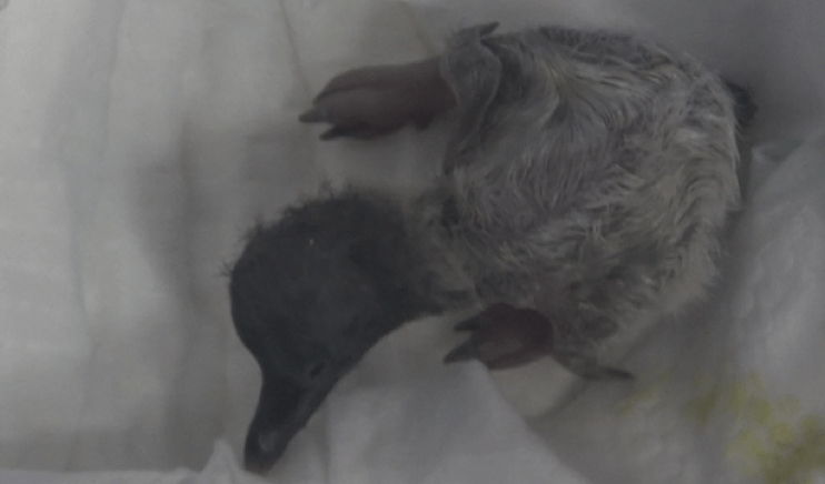 上海海昌海洋公园的阿德利企鹅们都是第一次做“父母”,在繁育方面没有充足的经验,为保证企鹅宝宝的顺利诞生,园区安排了有近20年专业经验的资深保育团队进行24小时轮流看护。阿德利企鹅是全世界繁殖点最靠南的动物之一,对温度要求极高,保育员将它们活动的区域温度控制在-2度左右,并每天为它们提供多春鱼及添加营养药的青鱼块,定期监测其体重,并在室内进行严格的消毒杀菌。2019年11月30日晚保育员发现第一枚企鹅蛋有破壳而出的迹象,但担心企鹅爸妈没有充足的经验,为保证企鹅宝宝顺利诞生,保育员采取了人工破壳手术,并于12月1日零点整顺利协助阿德利企鹅宝宝诞生。新生小企鹅体重约53克,是正常企鹅宝宝体重的一半,但经检查它的身体非常健康,为让小企鹅在更加自然的生活环境下成长,保育员也在确认企鹅宝宝身体状态稳定后将它送回爸爸妈妈的身边。