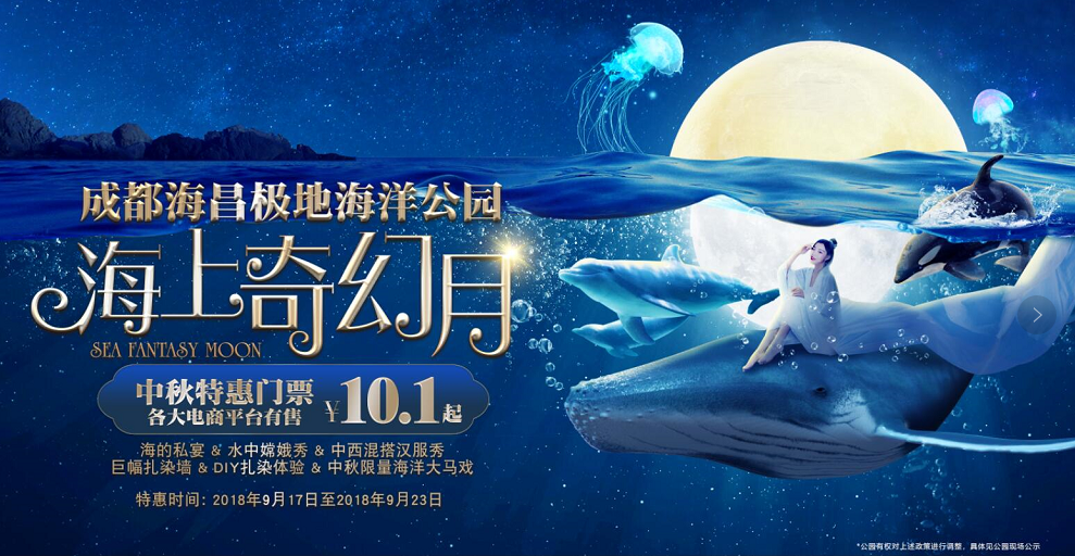 2018年倒数第二个法定假期中秋即将来临,围绕节日的各种活动也陆续登场。今天从成都海昌极地海洋公园获悉,从9月22日到9月24日,公园将推出“海上奇幻月”系列活动:“嫦娥仙子水中奔月”、“中西混搭汉服秀”、”海的私宴”、“中秋限定海洋大马戏”等。其中16岁(含)以下青少年游客还可享受10.1元的超低门票,重庆、陕西、贵州游客还可独享168元的特惠门票。