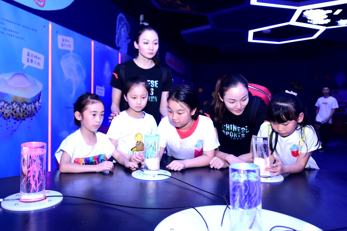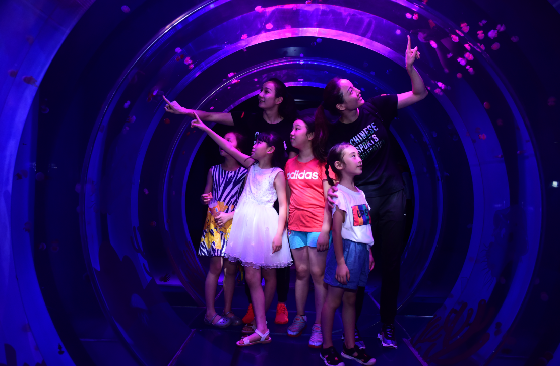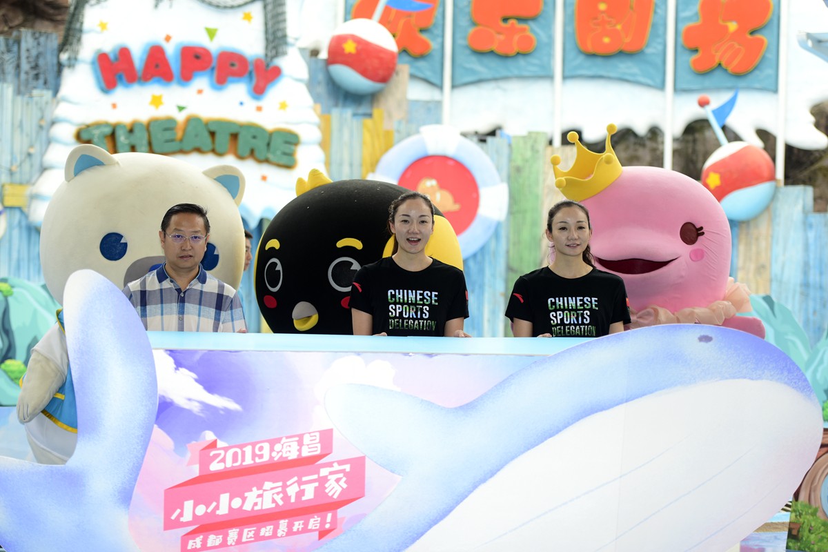 启幕仪式之后,蒋家姐妹还带着4位2019小小旅行家的报名选手开启了一堂海洋公园科普课,他们先后与白鲸、海豚进行互动,认识它们的不同和性格等,同时还来到水母繁育实验室,了解水母是如何繁育和生长的。 相关背景:海昌小小旅行家 2014年起海昌海洋公园发起了“小小旅行家”活动,前后已经组织了全国各地的小小旅行家们去到了中国香港、中国台湾、毛里求斯、山西太原航天城、卧龙大熊猫栖息地,通过旅行中的学习和发现,开阔孩子们的视野、对海洋、宇宙知识等进行寓教于乐地学习。2019年海昌小小旅行家从6月8日在全国同步启幕,预计8月,全国的优胜选手将赴新西兰开启旅行。