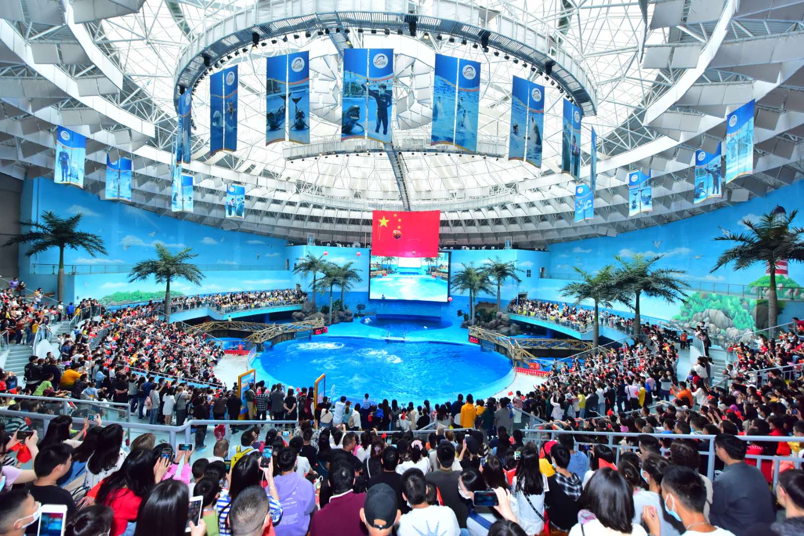 近日,从成都海昌极地海洋公园获悉,十一国庆/中秋双节期间,公园特别推出了姓名带“国”字游客免票、宠粉大转盘、鲨池升旗秀、海陆萌宠吃月饼等福利和限定活动。 海陆萌宠吃月饼 中秋节当天,成都海昌极地海洋公园在园区内为广大动物们准备了中秋特制海鱼月饼,身穿汉服的特约嘉宾带上月饼果盘,分别来到了公园内的萌宠星球、海豹馆,喂食可爱的海洋动物和陆地萌宠。当然,吃月饼福利也少不了极地霸主北极熊,因为北极熊的嗅觉非常灵敏,所以驯养师们还特意在月饼上涂了厚厚的蜂蜜,让它老远就可以嗅到节日的气息,加上月饼里丰富的海鱼、牛肉内馅,让北极熊也度过了一个特别的中秋/国庆假期。