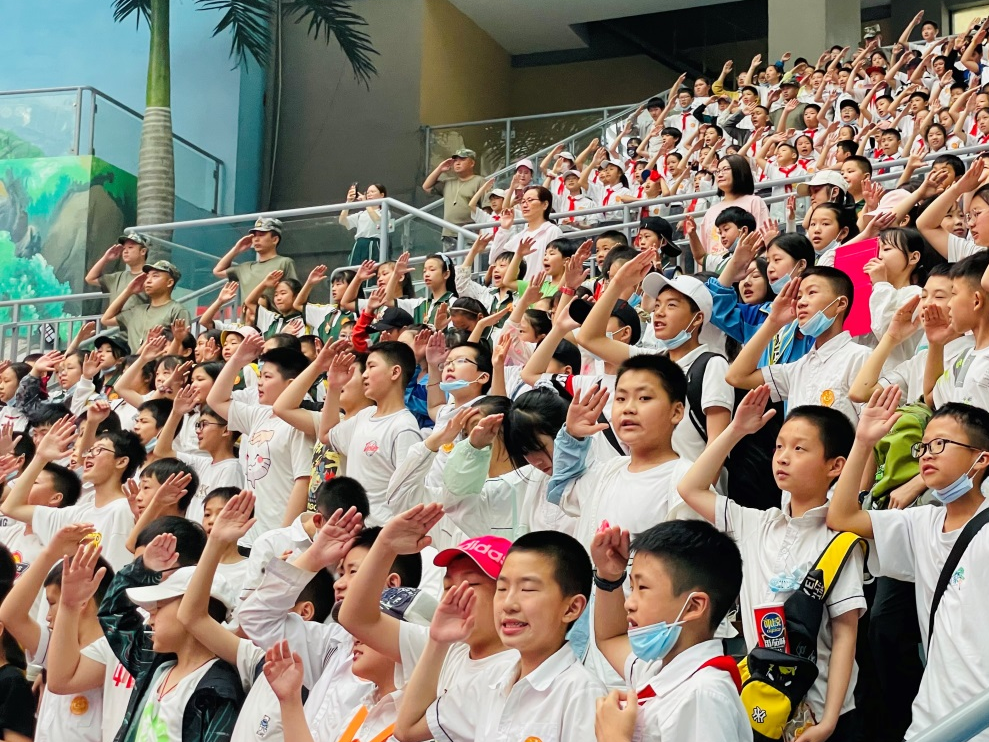 此次“红领巾心向党”红色研学实践活动从5月启动,将一直持续到7月。公园在北极熊广场,以党的相关知识为题,对党史、四川优秀共产党员、长征在四川等信息进行综合展览;每天在鲸豚表演场,公园携手四川天府新区华阳街道南山社区邀请到6位优秀党员现场开启了“一堂特别的党课”,老党员深情并茂地想游客讲述了中国共产党百年奋进的历程,并分享了各自与党相关的故事。其中,徐宽富老师作为抗美援朝的老战士、老党员, 他向孩子们讲述了南昌起义、遵义会议等共产党血泪奋战史的故事,让学生们了解到今天美好生活的来之不易,激励现场学生不忘初心、砥砺前行。