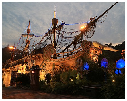 偌大的海盗船屹立在这蓝天白云和青山之下,波光粼粼的 [...]