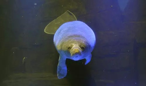 来自非洲西部的海牛,俗称“美人鱼”,是海洋中唯一的草食哺乳动物,没心没肺的海牛,俨然就是活脱脱的“女汉子”。号称“女汉子”的西非海牛,长1.5~4米,体重三四百公斤,是一个素食主义者,而且是个“大胃王”,大白菜、生菜、水葫芦等是它们的最爱,一天下来它们要吃20公斤左右的食物。为什么说海牛也是“美人鱼”呢?从配有科普讲解的海牛水中表演里,记者了解到,海牛在哺乳幼仔时会像人一样怀抱着海牛宝宝,在浮出水面时,头上常常会披着水草,让航海水手们误以为是长发飘飘的美女,于是“美人鱼”的传说便流传至今了。