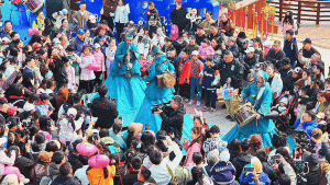 开园期间,曾于乌镇戏剧节引发现象级热议的法国“赛莱斯特伊”剧团,其原班人马携高跷音乐剧《预言》于3月21日至22日完成东北首秀。高达两米、身着蒸汽朋克造型的“绿老头”穿行于游客之间,以即兴音符打破观演隔阂,让每一次擦肩都成为独一无二的戏剧瞬间。