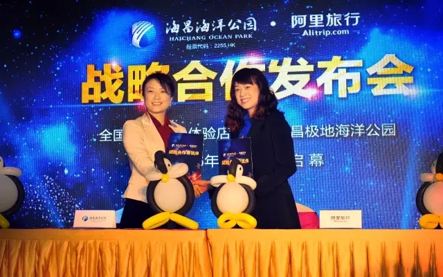 (海昌海洋公园控股有限公司高级营销总监郑芳女士与阿里旅行副总裁金奕女士共同签署战略合作协议)