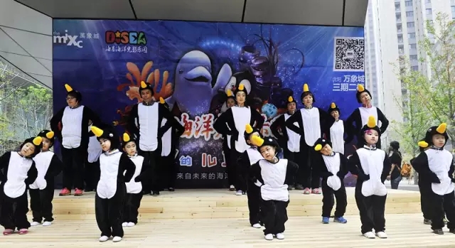 9月25日,在沈阳万象城三期喷泉广场,伴随着一群身着企鹅服装的小朋友憨态可掬的舞蹈,沈城海洋主题多媒体益智互动体验类儿童项目“D·SEA海昌海洋光影乐园”正式揭开帷幕并投入运营。