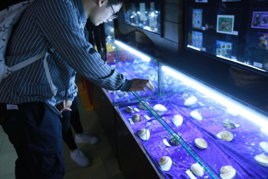 “五一”期间,青岛极地海洋世界推出了海洋邮票展、深海贝壳展,数百上千贝壳邮票带着生命的历史扑面而来,吸引了不少游客驻足观看,使他们对海洋生物有了更深刻的认知。