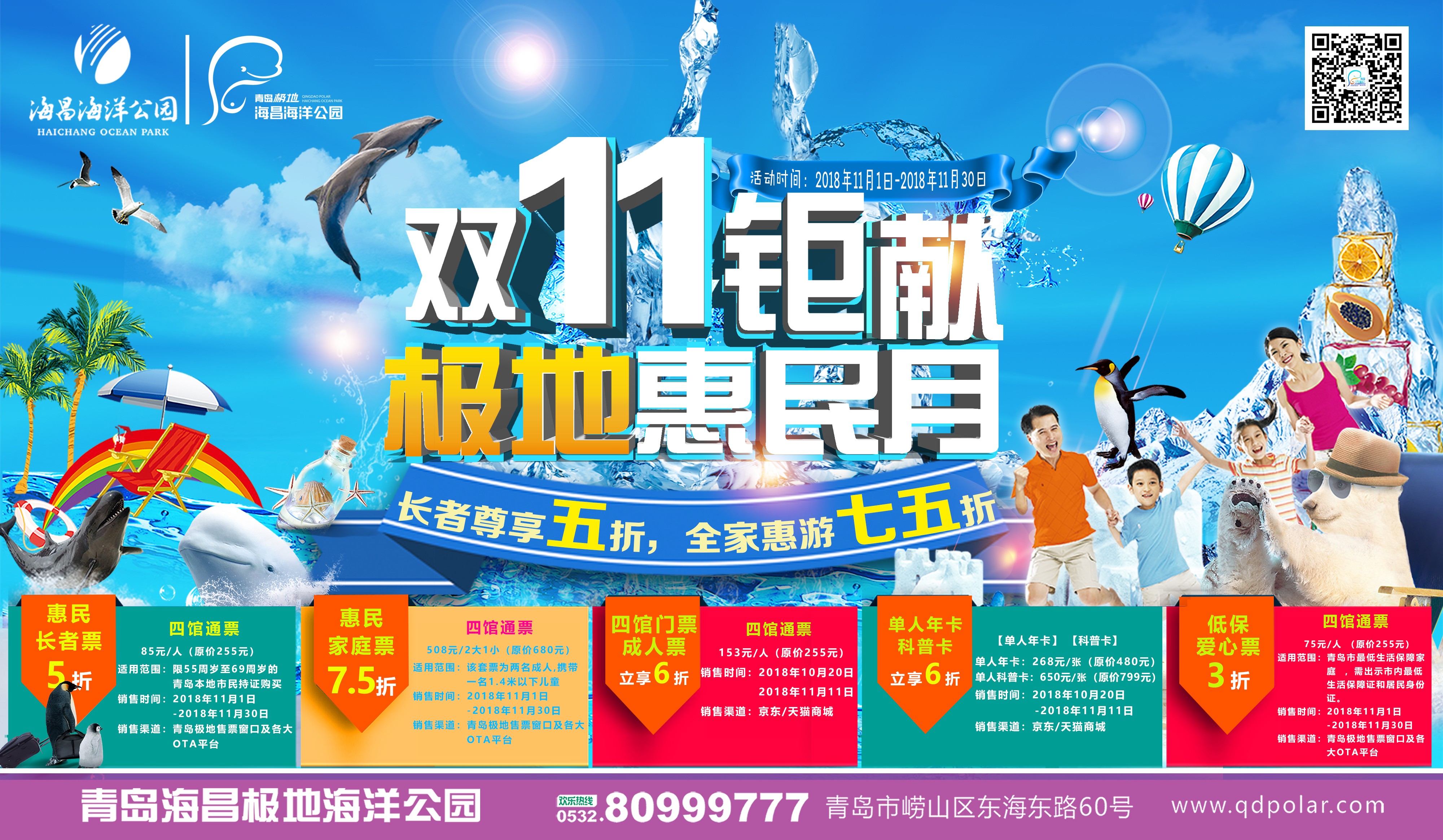 除了精彩的万圣节活动 一年一度的双十一 要!来!啦! 青岛海昌极地海洋公园 当然要给小伙伴们 带来多重福利 为了守护住小伙伴们的荷包 各种优惠商品 纷纷上架 减价不减质的青岛海昌极地 等着您的到来~ 呦呦切克闹 必须必须来一套!