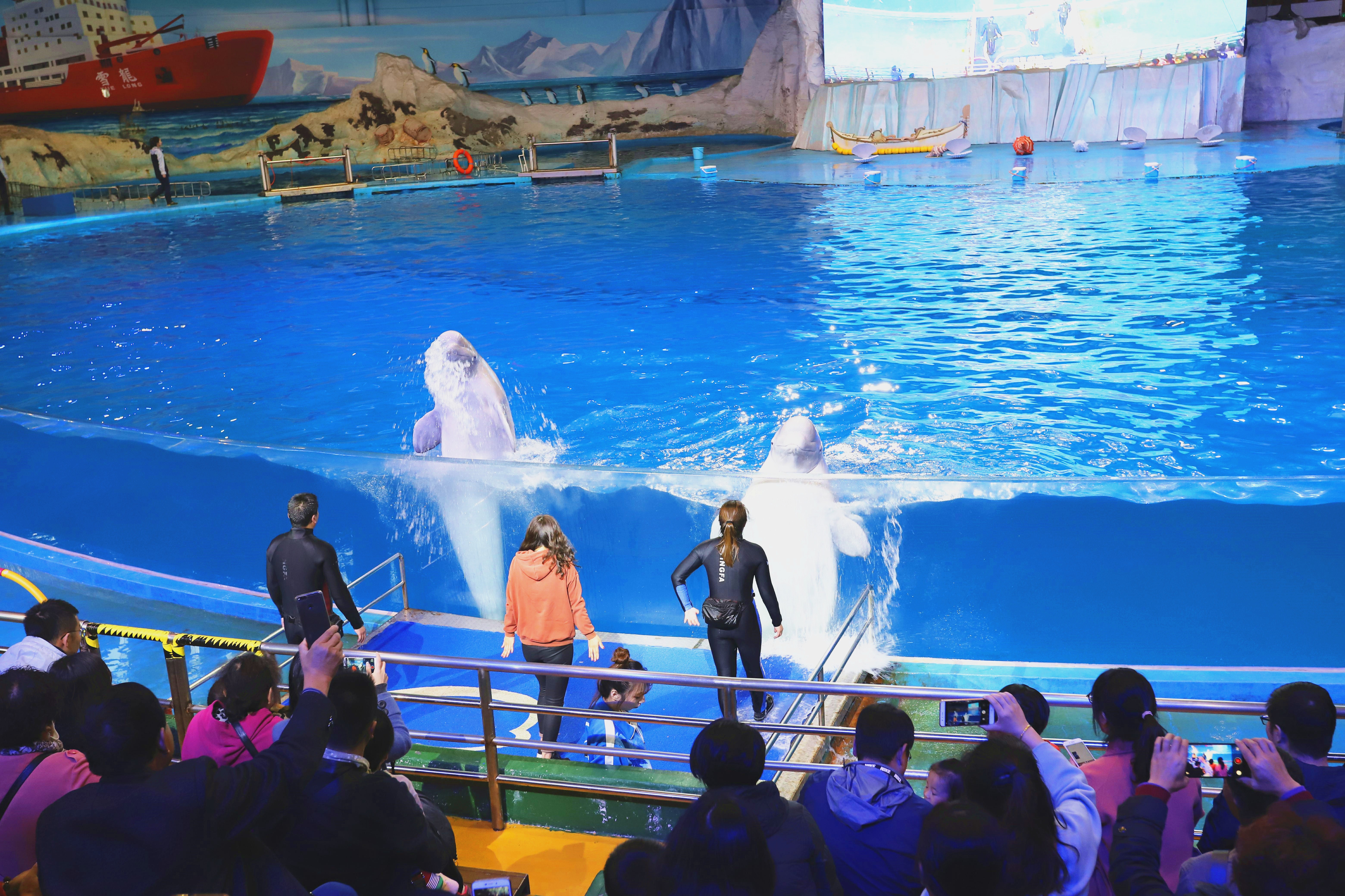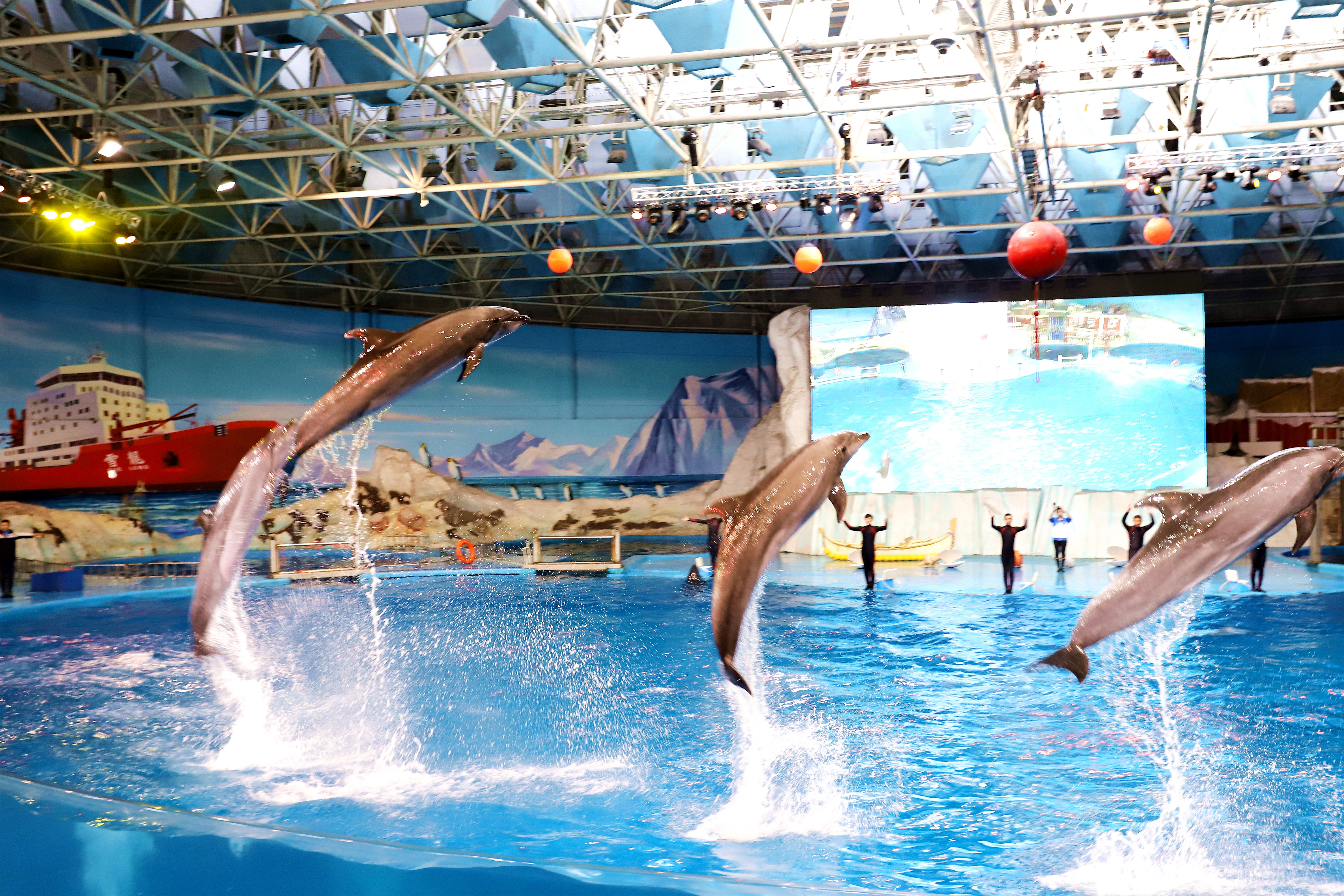 平度大泽山镇的六个村庄 245名老乡乘坐交运集团的 旅游惠民月爱心大巴 一大早来到极地海洋公园 入馆参观游览 并观看了精彩的鲸豚表演