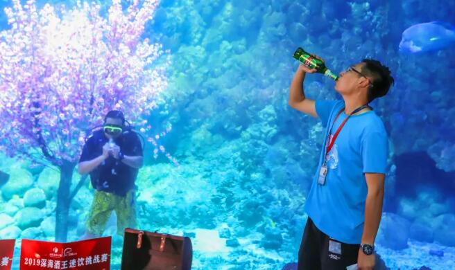 在各地的传说里,青岛人哈酒的节奏,外地人一般看不懂,整箱喝,整桶喝,用塑料袋喝……对我们来说,只要气氛好,喝酒姿势不重要,别叨叨! 但若是置身深海水下, 还能愉快地哈酒吗? 2019深海酒王速饮挑战赛在7月22日正式开幕,自7月26日至8月16日期间,青岛海昌极地海洋公园,将向社会各路酒场豪杰发出邀请,参与深海速饮挑战赛,冠军更是能够赢得10000元现金大奖。