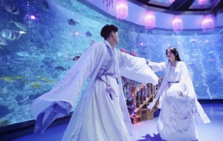 青岛海昌极地海洋公园七夕上演古风快闪秀