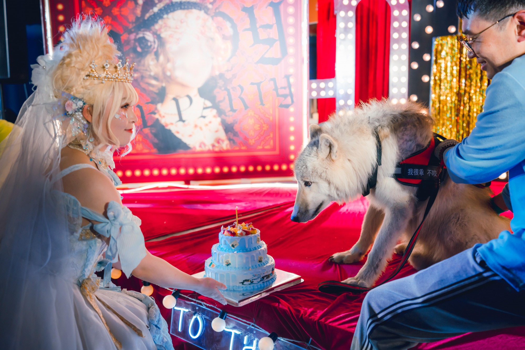 与生日宴同时举办的,还有“Lolita的夜宴茶会”,现场不仅有崽崽爱吃的食物,更有饲养员精心准备的生日蛋糕。崽崽在一众lolita小姐姐与饲养员的簇拥下,开心地度过了他的周岁生日。