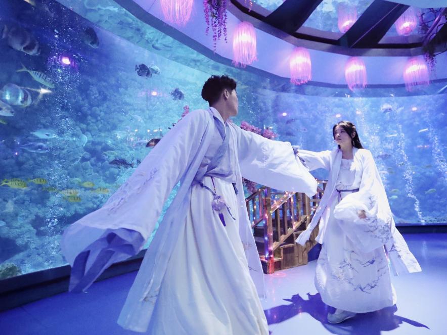 据公园工作人员介绍,举办本次七夕古风快闪秀,意在营造七夕甜蜜氛围的同时,让游客加深对中华优良传统文化由来的认知。此外,青岛海昌极地海洋公园还打造了“三生三世”主题桃花树、鹊桥打卡点,让游客在海洋馆内也能感受浓浓的佳节氛围,留下美好七夕记忆。