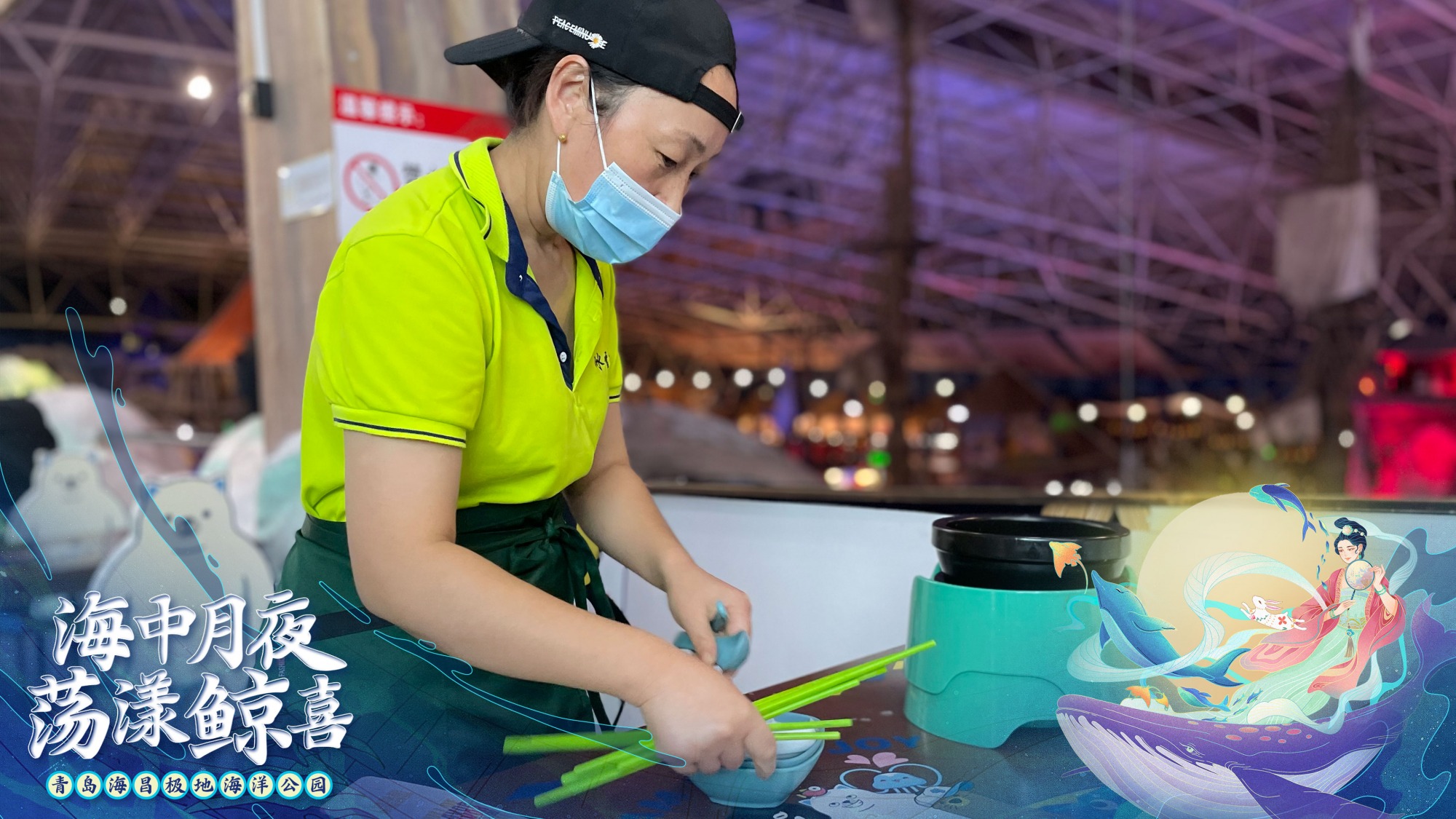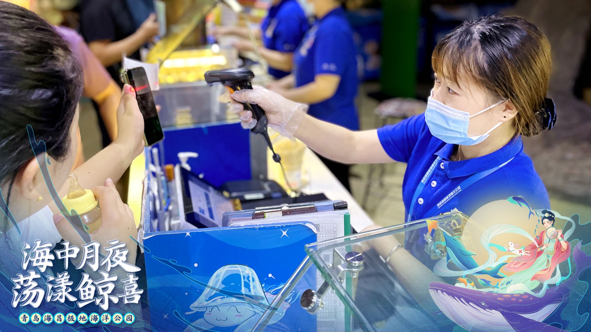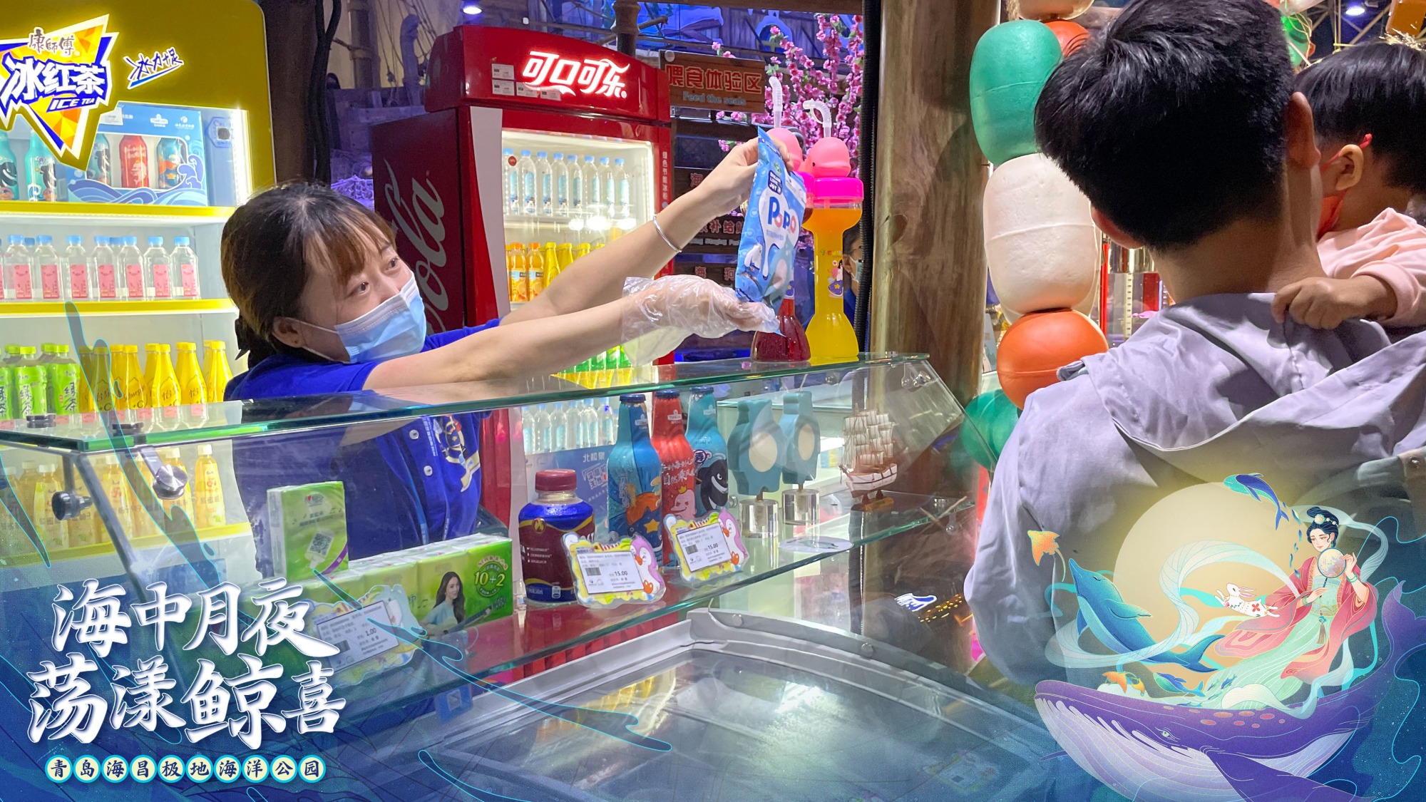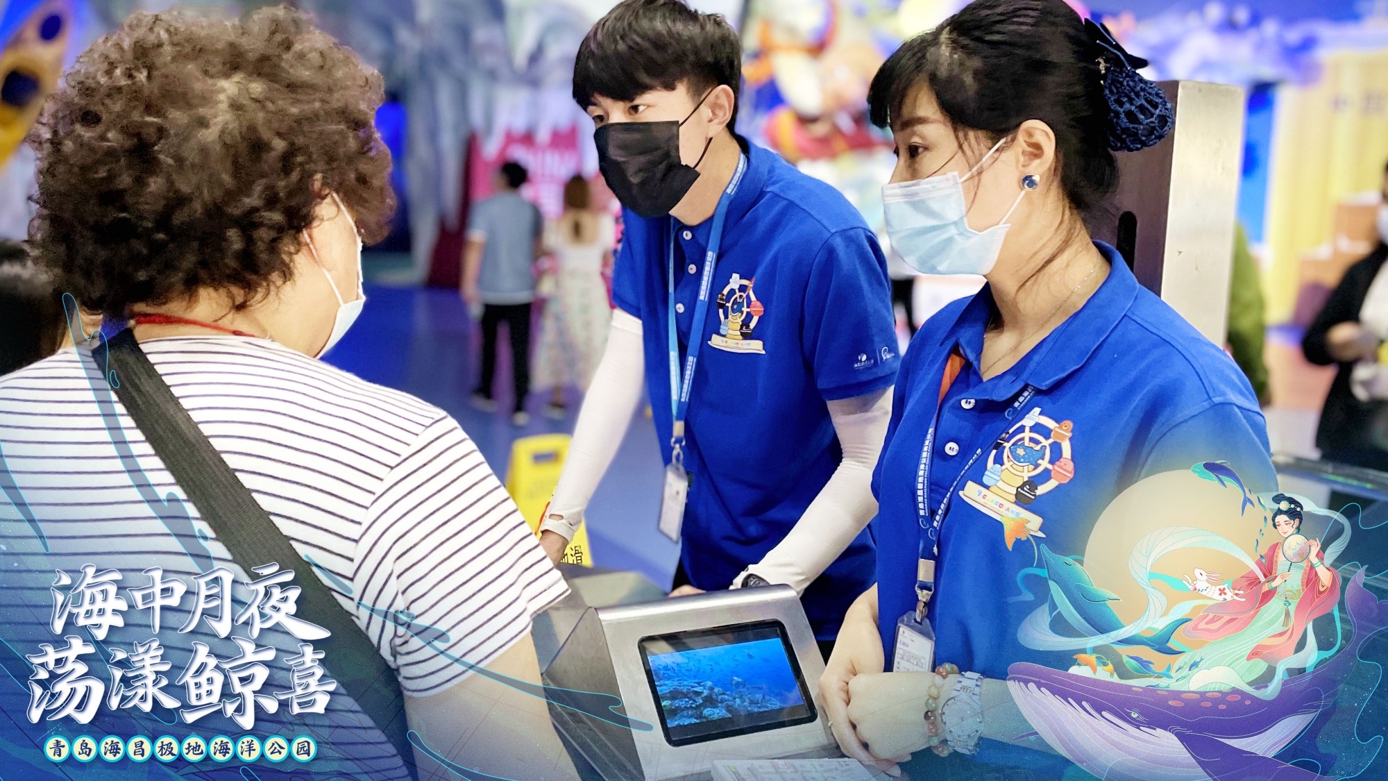 今年中秋假期,青岛海昌极地海洋公园近500名员工,依旧放弃了与家人团聚、出游的机会,坚守在岗位上,为大众呈现了一个温馨、奇幻、欢乐的中秋假期。《水下嫦娥奔月秀》让传说故事变得更加奇幻;北极熊、北极狼等动物吃月饼活动,让动物感受到人类对它们的关爱;陶瓷玉兔派发活动,让小游客们一起把歌唱,还收获到了限量的陶瓷玉兔……2021年中秋假日,公园累积接待全国游客超过近2万人次,相信大家在青岛海昌极地海洋公园既看到了南、北极的海洋动物,收获了各种海洋科普知识,也感受了一个特别的“中秋夜月”和“荡漾鲸喜”的中秋假期。
