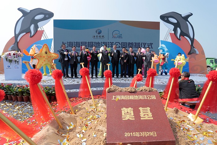 2015年3月29日,上海海昌海洋公园在上海临港滴水湖畔举行隆重的奠基仪式,标志着该项目进入开发建设阶段。上海市临港地区开发建设管理委员会党组书记、常务副主任、浦东新区人民政府副区长陈鸣波、国家海洋局极地研究中心主任杨惠根、临港管委会和港城集团相关领导,香港海洋公园、台湾花莲海洋公园、默林娱乐集团、美国动物园和水族馆协会(AZA)等国内国际同行业合作伙伴、项目设计方GGE、金融系统以及新闻媒体朋友出席奠基仪式。