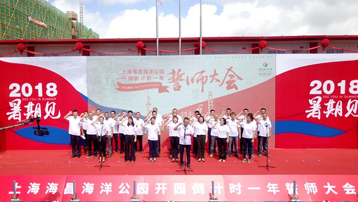 8月22日,“上海海昌海洋公园开园倒计时一年誓师大会”在滴水湖畔项目所在地隆重举行。浦东新区区委常委、临港管委会党组书记、常务副主任陈杰,以及临港管委会、南汇新城镇、港城集团、海昌海洋公园相关领导出席本次大会。这标志着“上海海昌海洋公园” 全面进入倒计时筹建的总攻阶段,并将于2018年暑期揭开面纱精彩绽放。