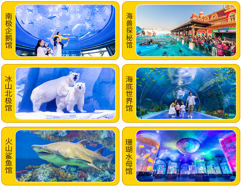 火山鲨鱼馆、南极企鹅馆、海兽探秘馆