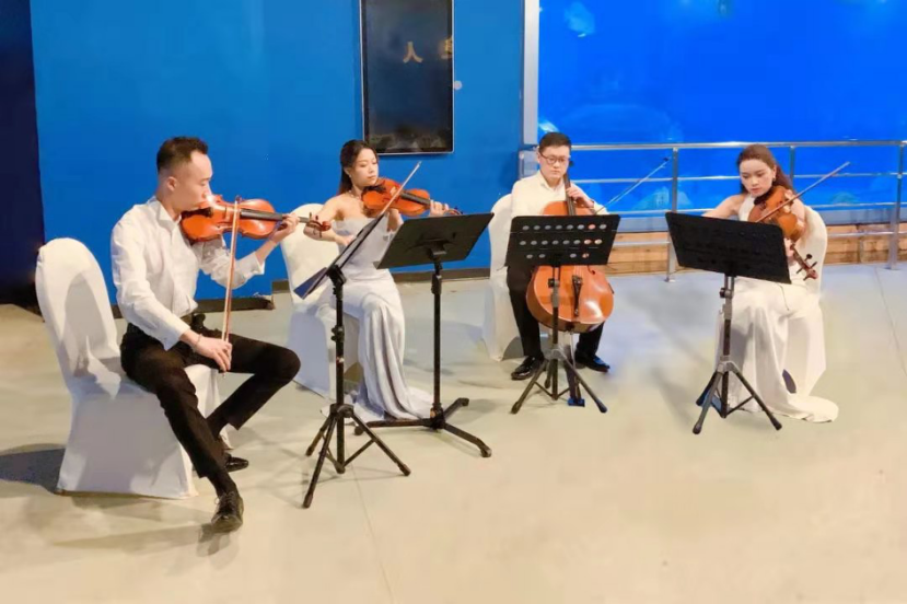 本次水下时装秀,利用多个机位,从不同角度呈现肉眼看不到的水下之美,通过HDMI传输技术,保留每个精彩瞬间,天津海昌还特别邀请专业的管弦乐队,全程现场演奏,搭配水底画面让观众真正置身于海底王国。作为华北地区乃至全国范围的首次水下直播时装秀,天津海昌将海洋特色与时尚时装相结合,打破常规模式,重新定义现代新时尚,为观众展现出震撼且具有创意的视觉效果。