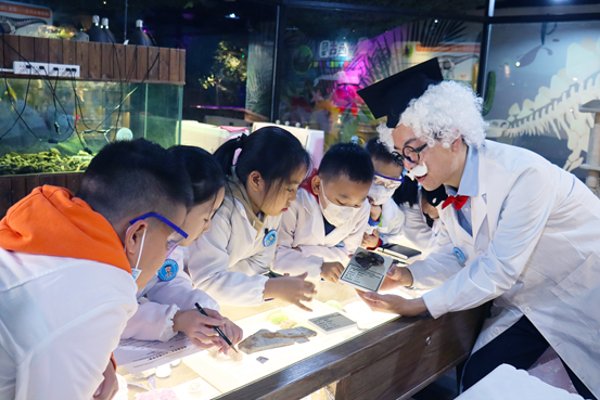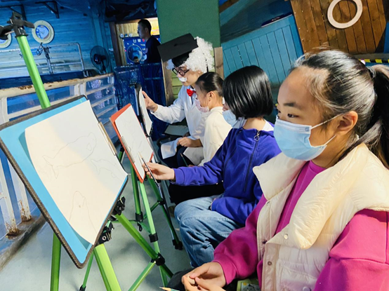 与此同时,为摆脱科普课程单向输出的模式,提高小朋友动手实践能力,天津海昌在每周二下午还为游客策划精心的体验活动,实现海昌探索日玩法新升级。在白鲸主题周,科普老师组织小朋友到白鲸码头前,通过观察、提问的方式,让小朋友自己动手绘画白鲸,在绘画的过程中进一步了解白鲸。在远古海洋主题周,还精心准备化石及考古道具,让小朋友可以亲手体验化石挖掘的艰辛,在挖掘后还要完成调查报告,实现课程系统化,让小朋友有更强的参与感。